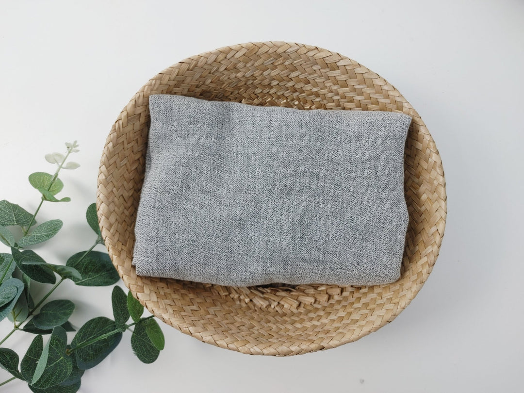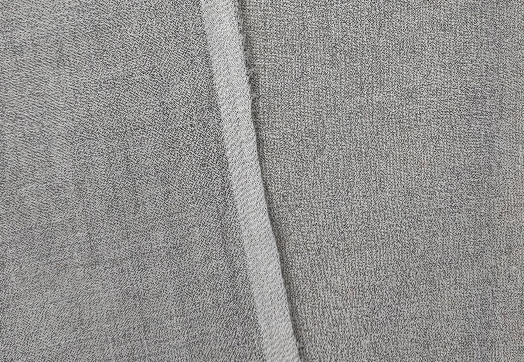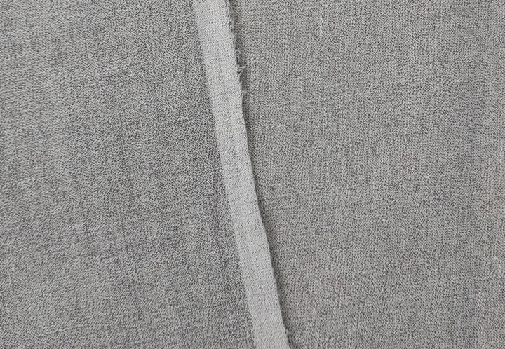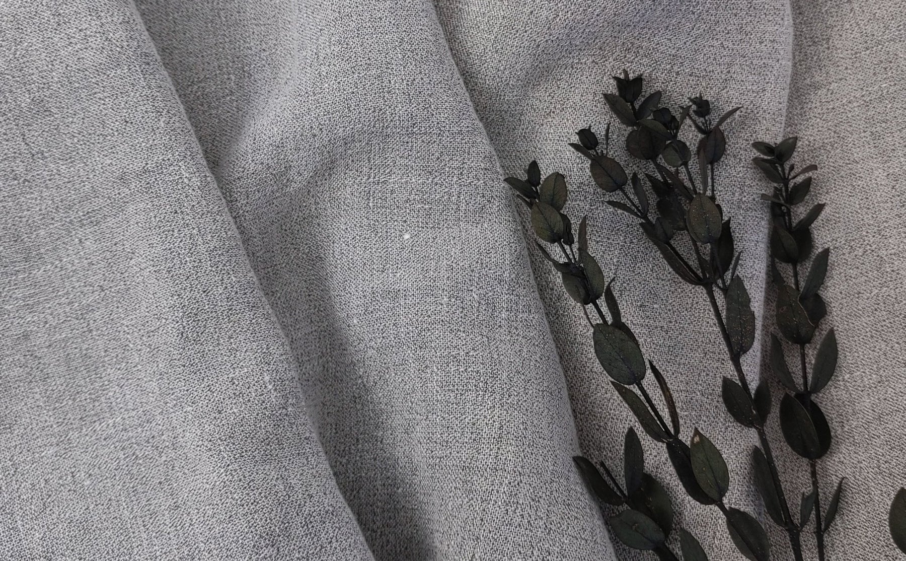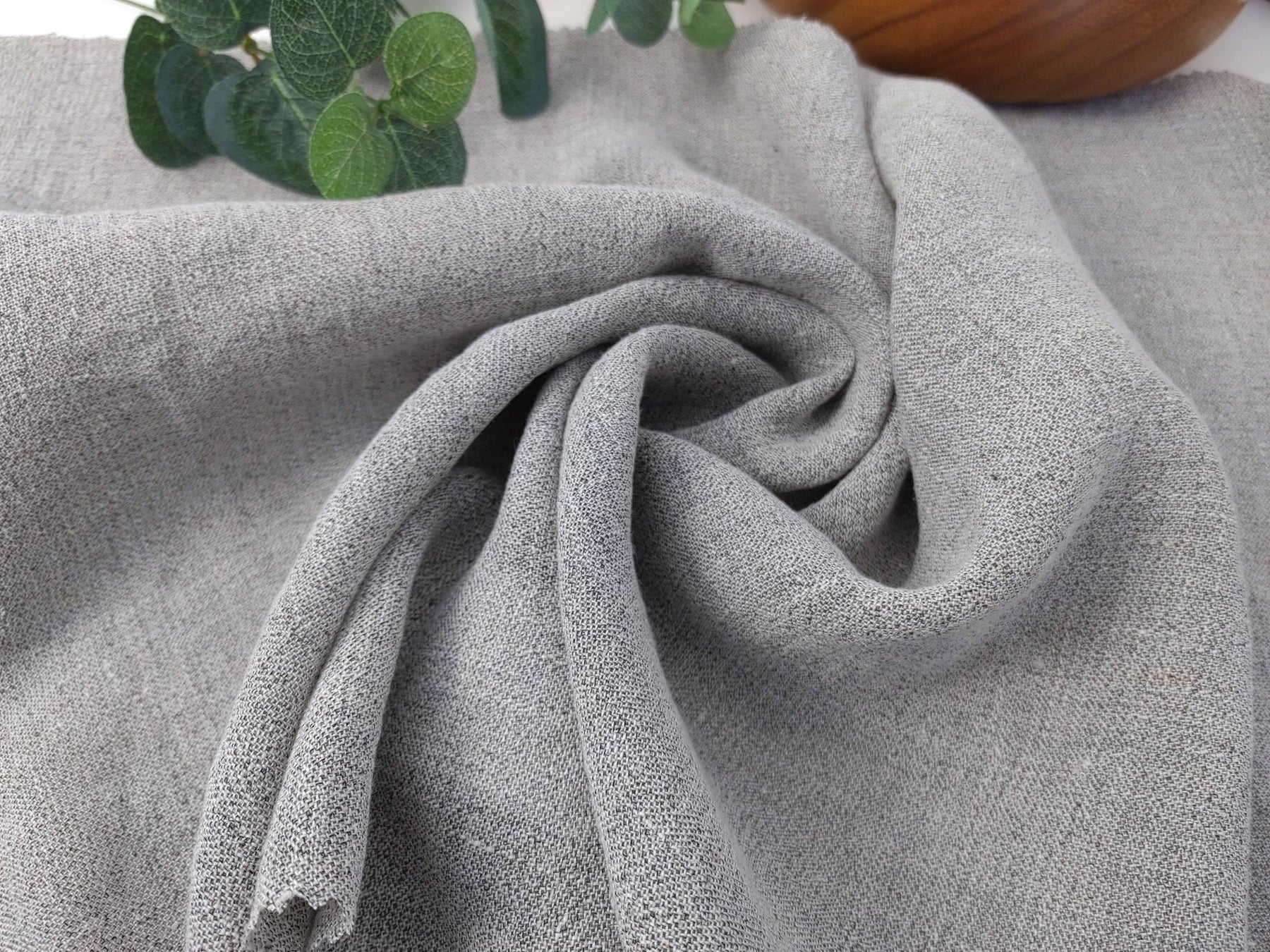 Introducing "Subtle Sophistication: Linen Polyester Mixed Fabric with Grey Plaid." Crafted from a blend of two linen yarns and thin polyester filament yarns, this fabric offers a cool and refreshing handfeel with a subtle wrinkle effect. Despite its appearance as a two-tone chambray, it features a discreet plaid pattern.