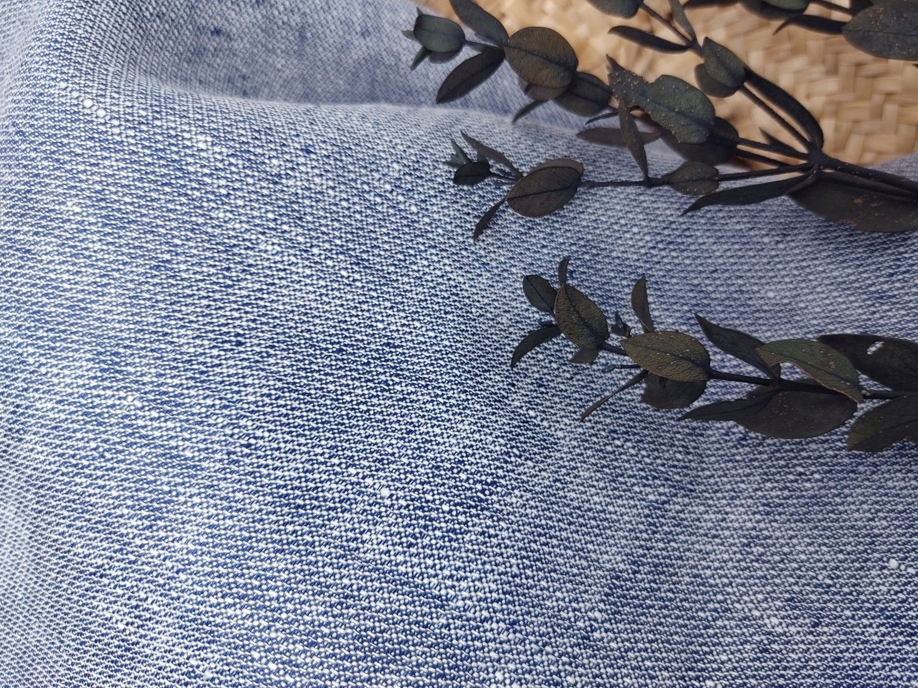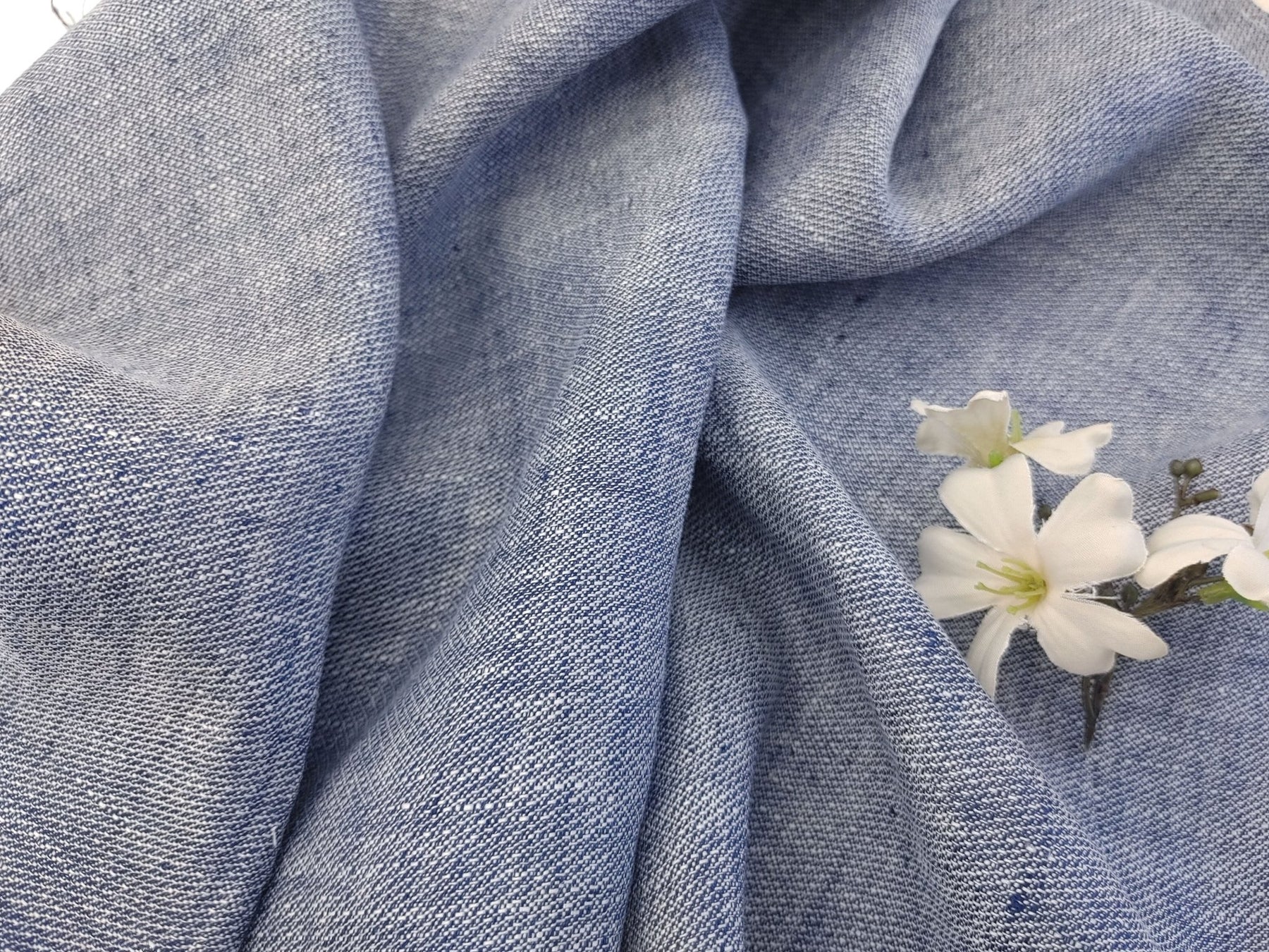 With no elasticity, this fabric maintains a sturdy structure, making it suitable for a variety of garment applications. Embrace the subtle elegance and visual interest of our Two-Tone Blue Dobby Weave in 100% Linen Fabric for your next creative project.