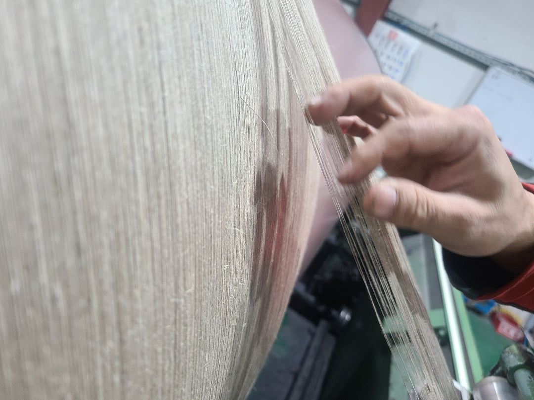 Weaving plays a crucial role in fabric production, so we rely on a skilled textile factory to handle this process. Before it starts, our producing team conducts a meticulous inspection of the yarns on the warp beam to ensure the production of high-quality linen fabrics. This attention to detail guarantees our fabrics meet the standards of excellence.
