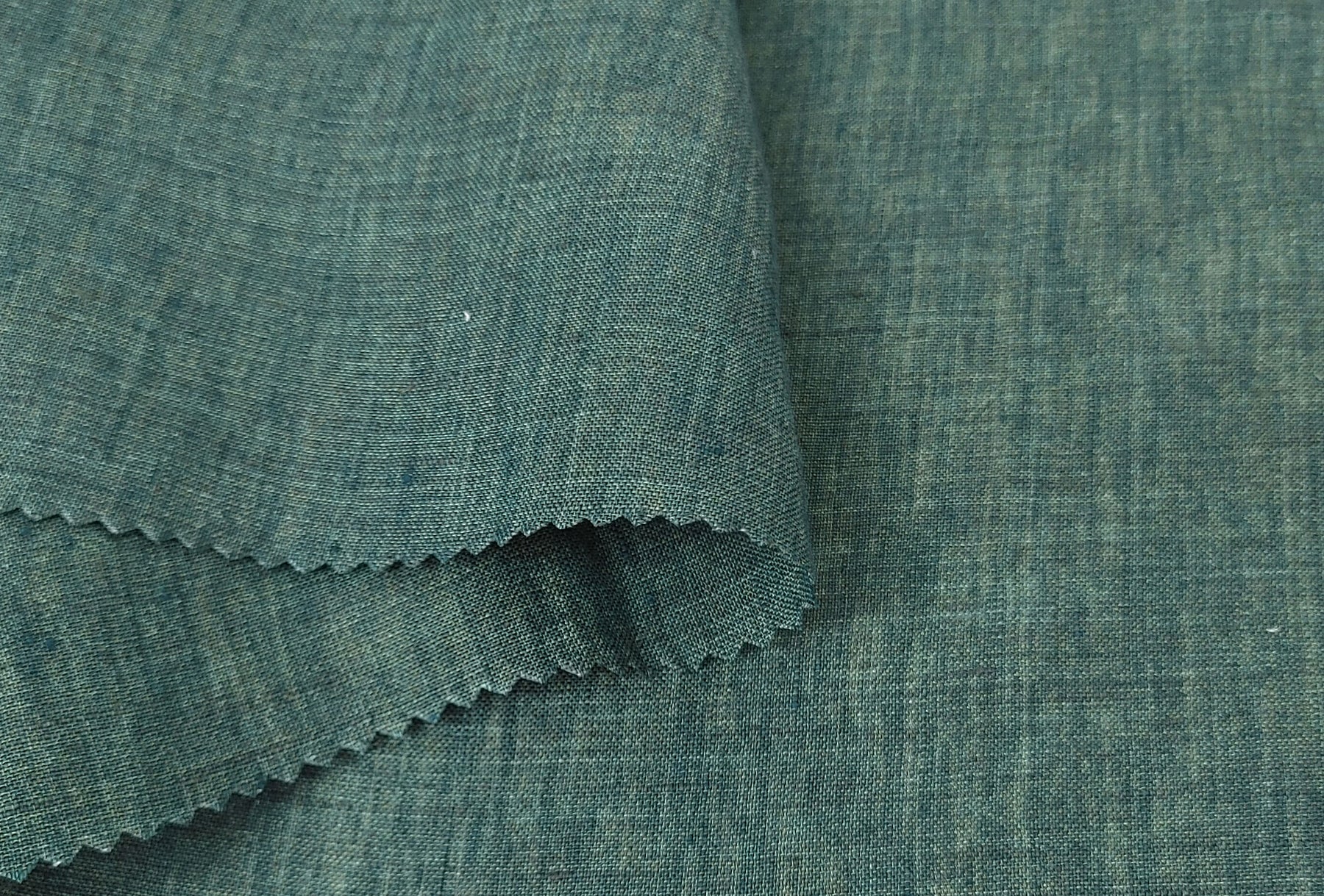 100% Linen Soft&Crisp Fabric 21s Vintage Chambray Khaki 7875