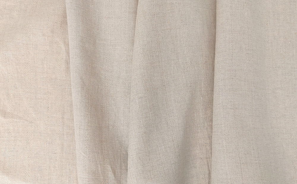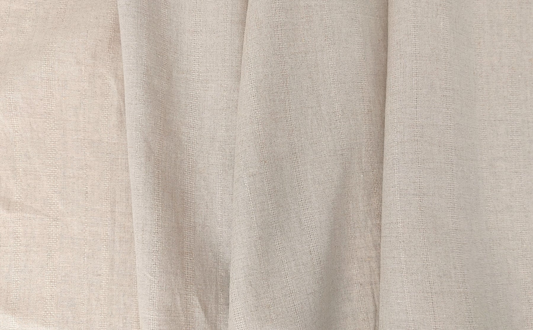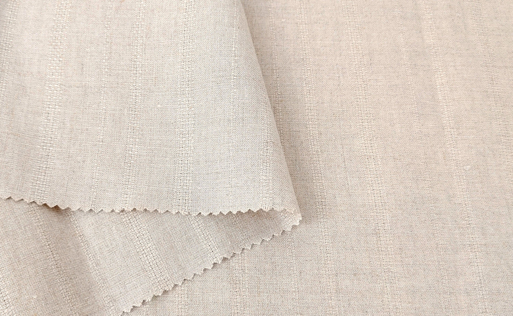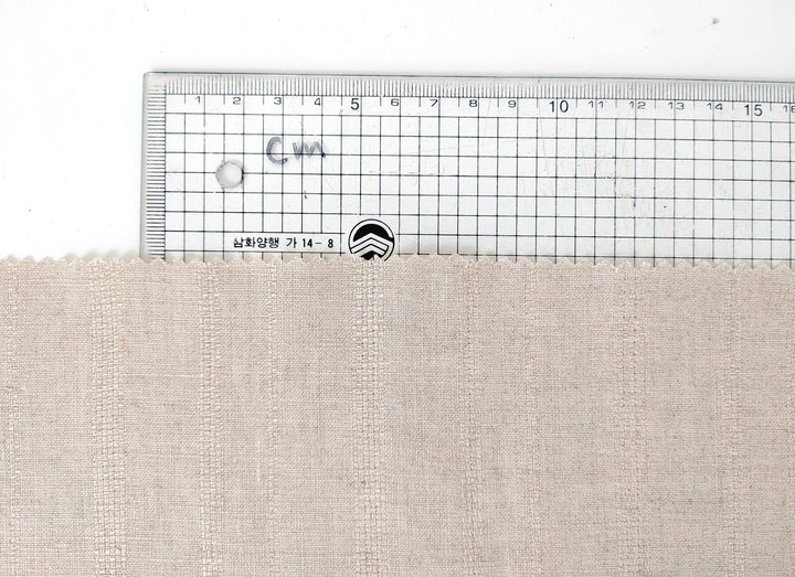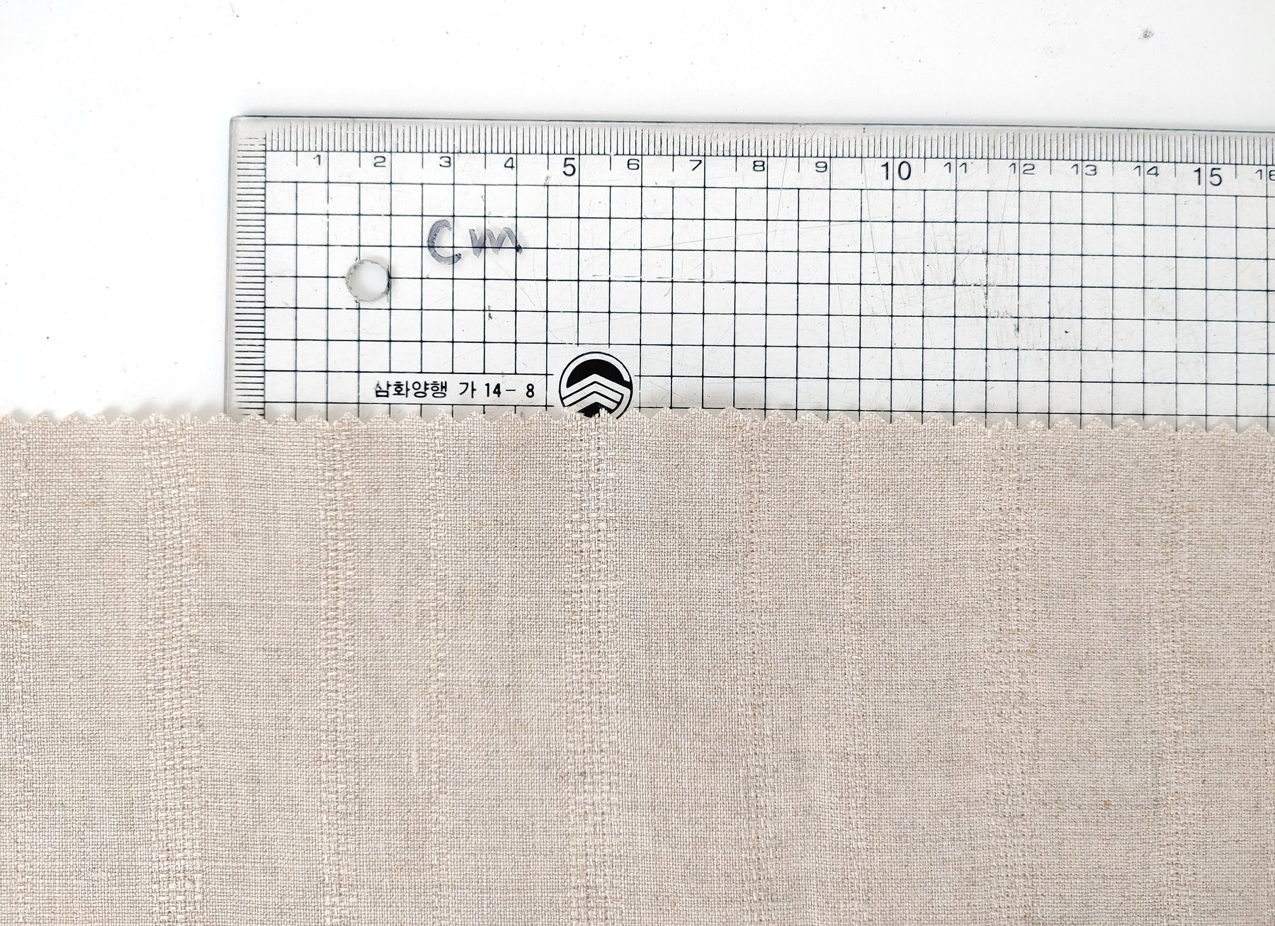 This fabric is crafted from 100% linen, utilizing fine linen yarn (14s) for a refined texture. The base features a plain weave structure, while the striking stripe pattern is created through dobby weaving, adding subtle depth and interest to the design.