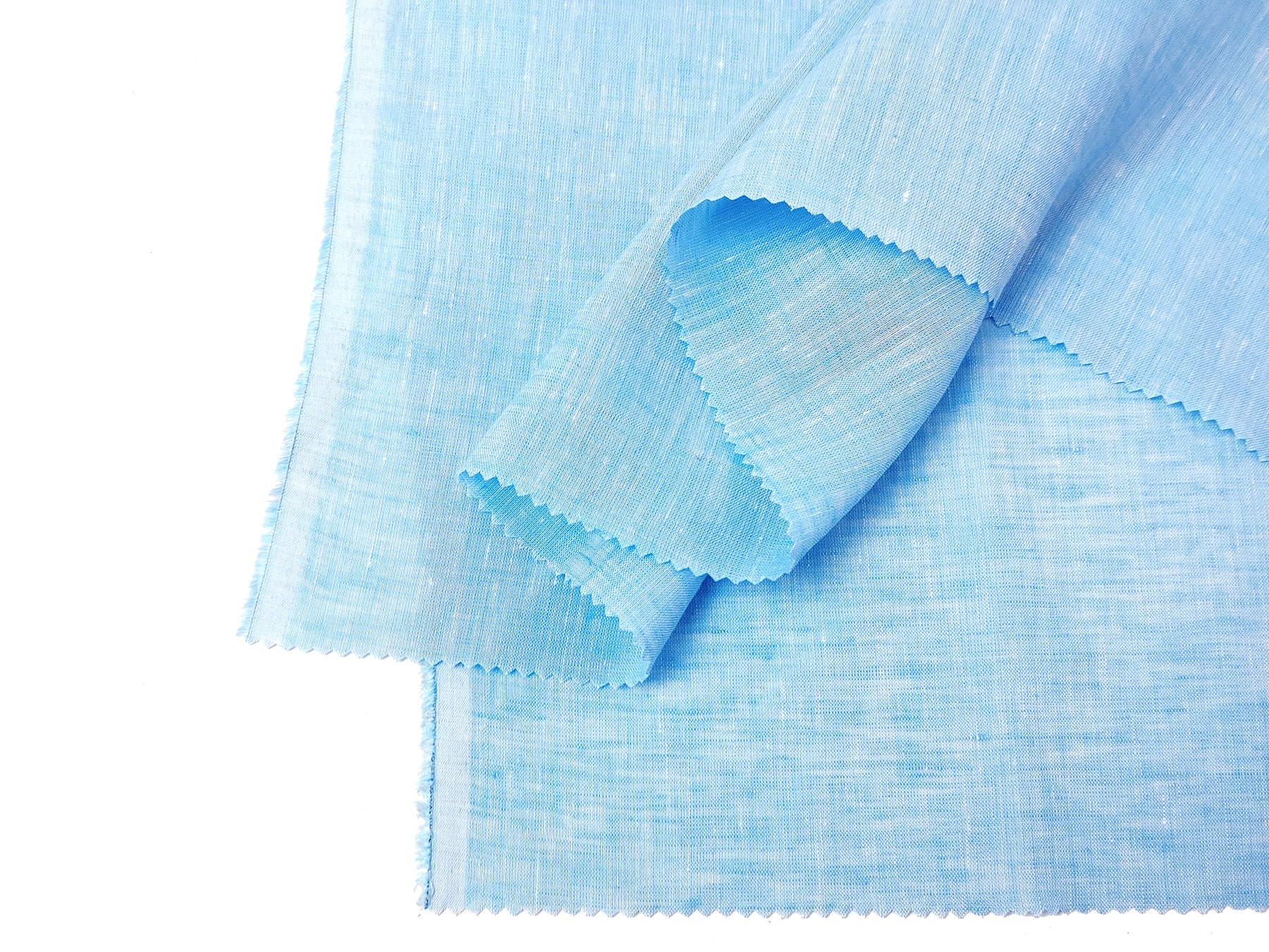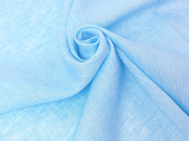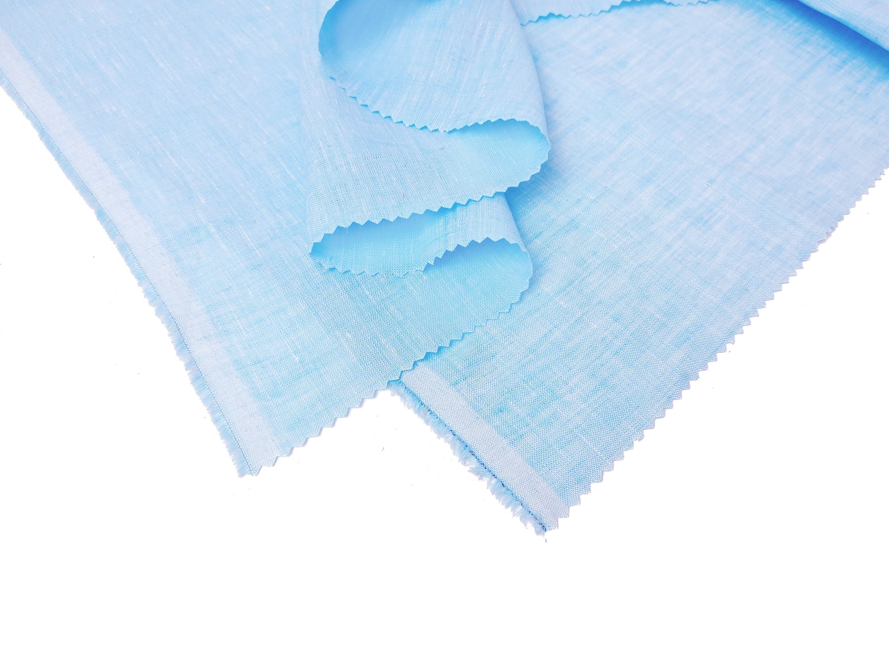 Crafted from fine linen yarn (21s), this 100% linen chambray fabric offers a sophisticated blend of durability and softness. The warp is white and the weft is blue, creating a beautiful sky blue shade with a subtle, textured appearance. Pre-washed for enhanced softness, this fabric feels comfortable to the touch and has a light, airy weight of 140 g/sqm (4.1 oz per square yard), making it ideal for breathable and stylish garments.
