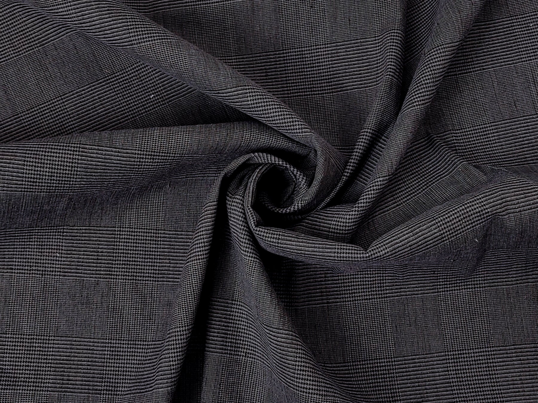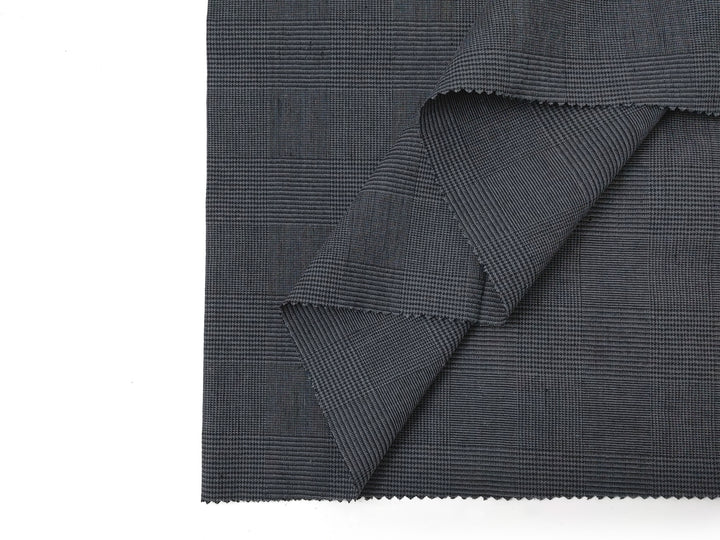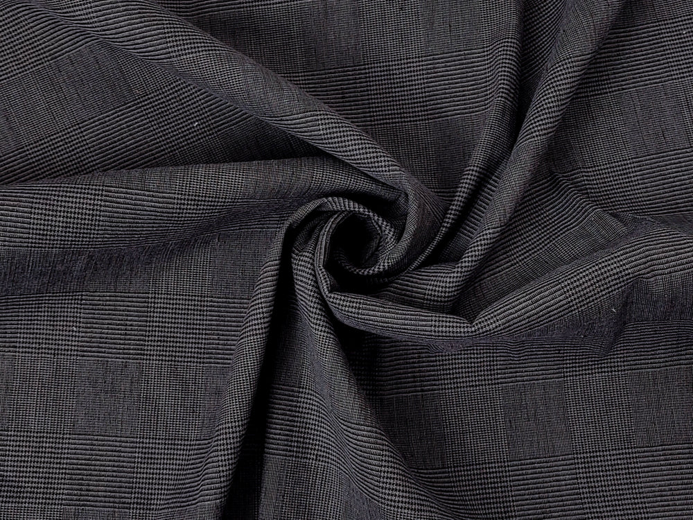 This grey glen plaid fabric is a sophisticated blend of 57% linen, 41% cotton, and 2% spandex, offering both style and comfort with its subtle stretch effect. The fabric's soft, pre-washed finish enhances its natural texture, making it ideal for garments that require a comfortable fit while maintaining a refined look. The addition of spandex provides gentle elasticity, perfect for structured yet flexible designs. With its timeless glen plaid pattern and breathable composition, this medium-weight fabric is a versatile choice for fashion or home décor projects, combining durability with a modern edge.