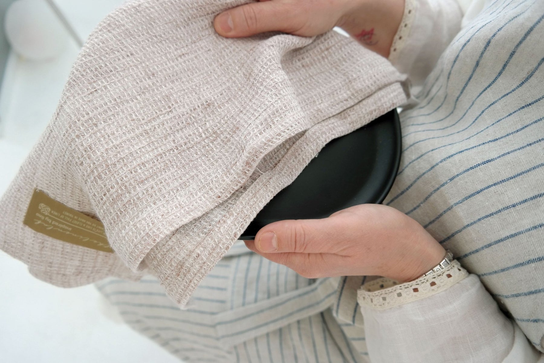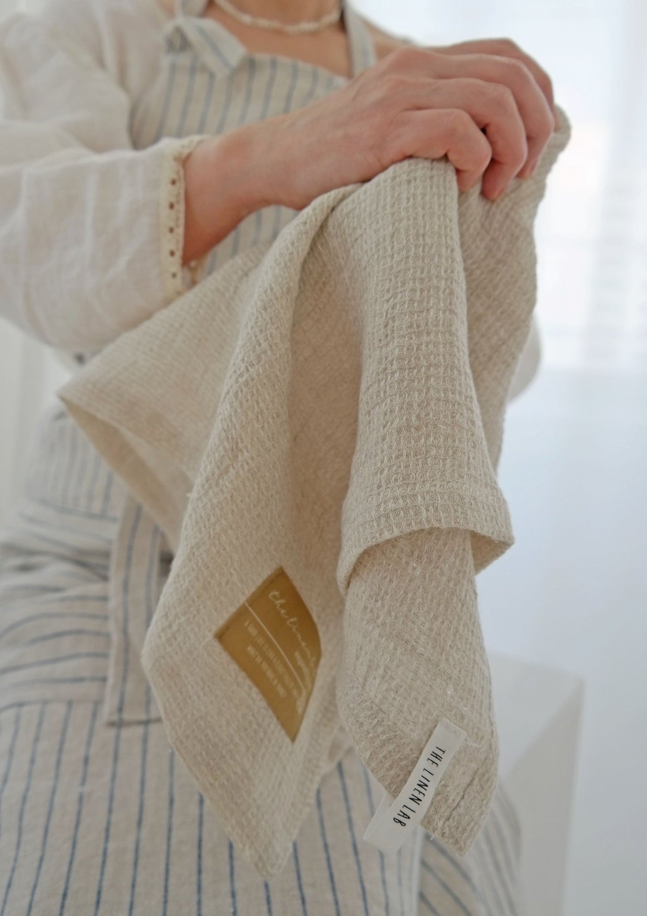 Linen Kitchen Cloth Towel Waffle Shape - The Linen Lab - Natural