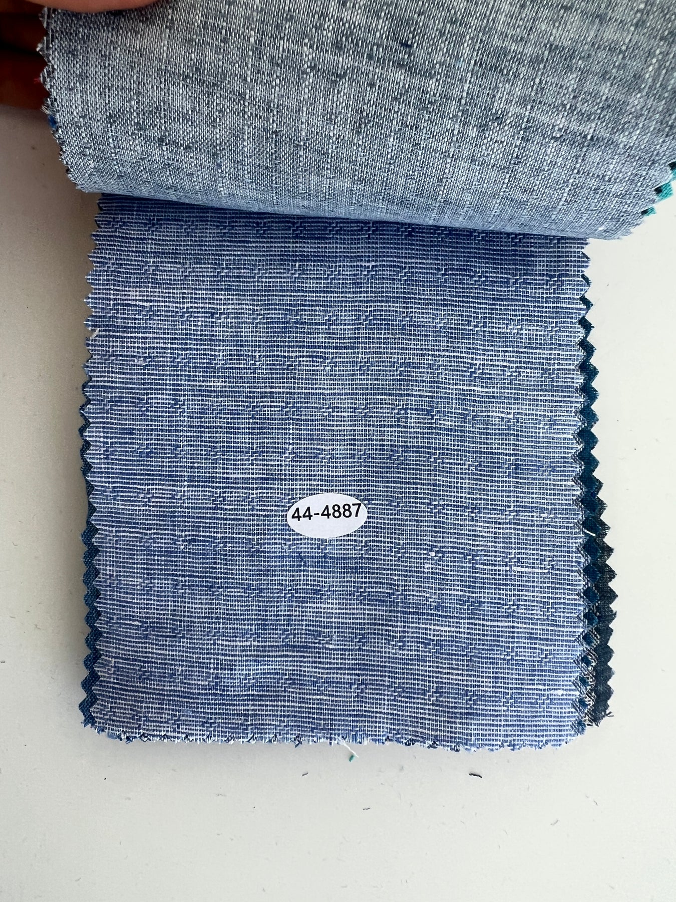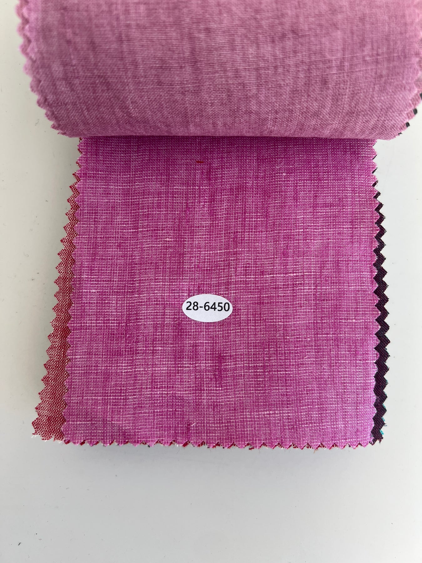 This collection contains 70 swatches, each sized 11 × 15.5 cm (4.3 × 6.1 inches). Every swatch has its own 4-digit SKU number attached directly to the fabric, making it easy to look up details on our website. The first page includes a summary of key specifications—composition, width, and weight—to help you compare and explore the full range of 100% linen options.